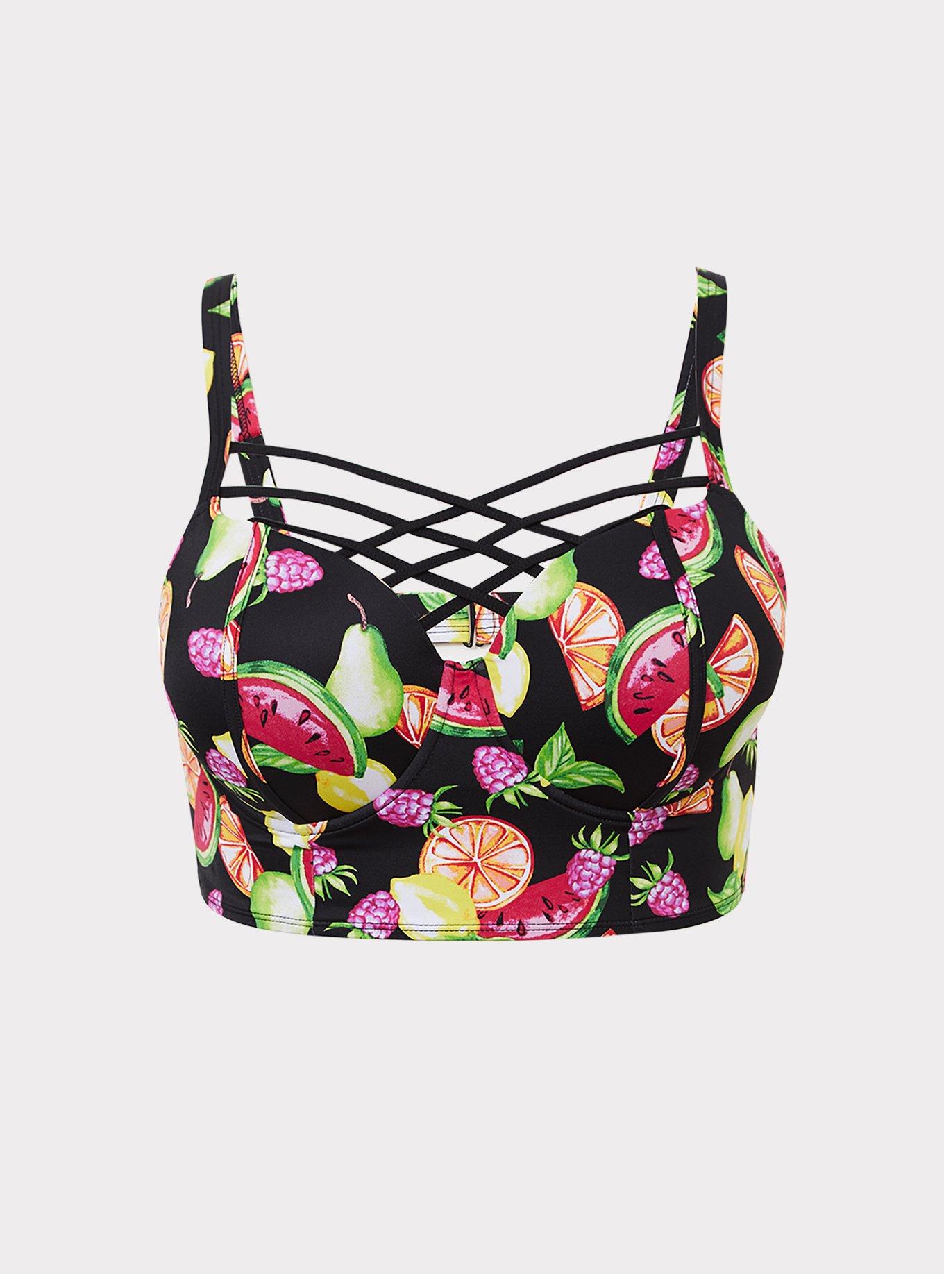 Plus Size Black Multi Fruit Lattice Push Up Balconette Bikini Very well made.