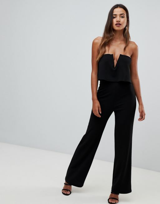 The Next Naomi Black Halter Neck Bandeau Split Leg Jumpsuit Club Very well made.