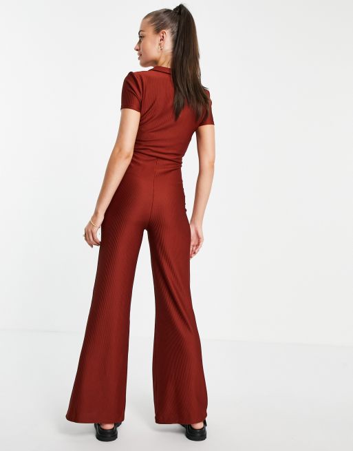 ASOS DESIGN collar zip front 70s jumpsuit in brown Very well made.