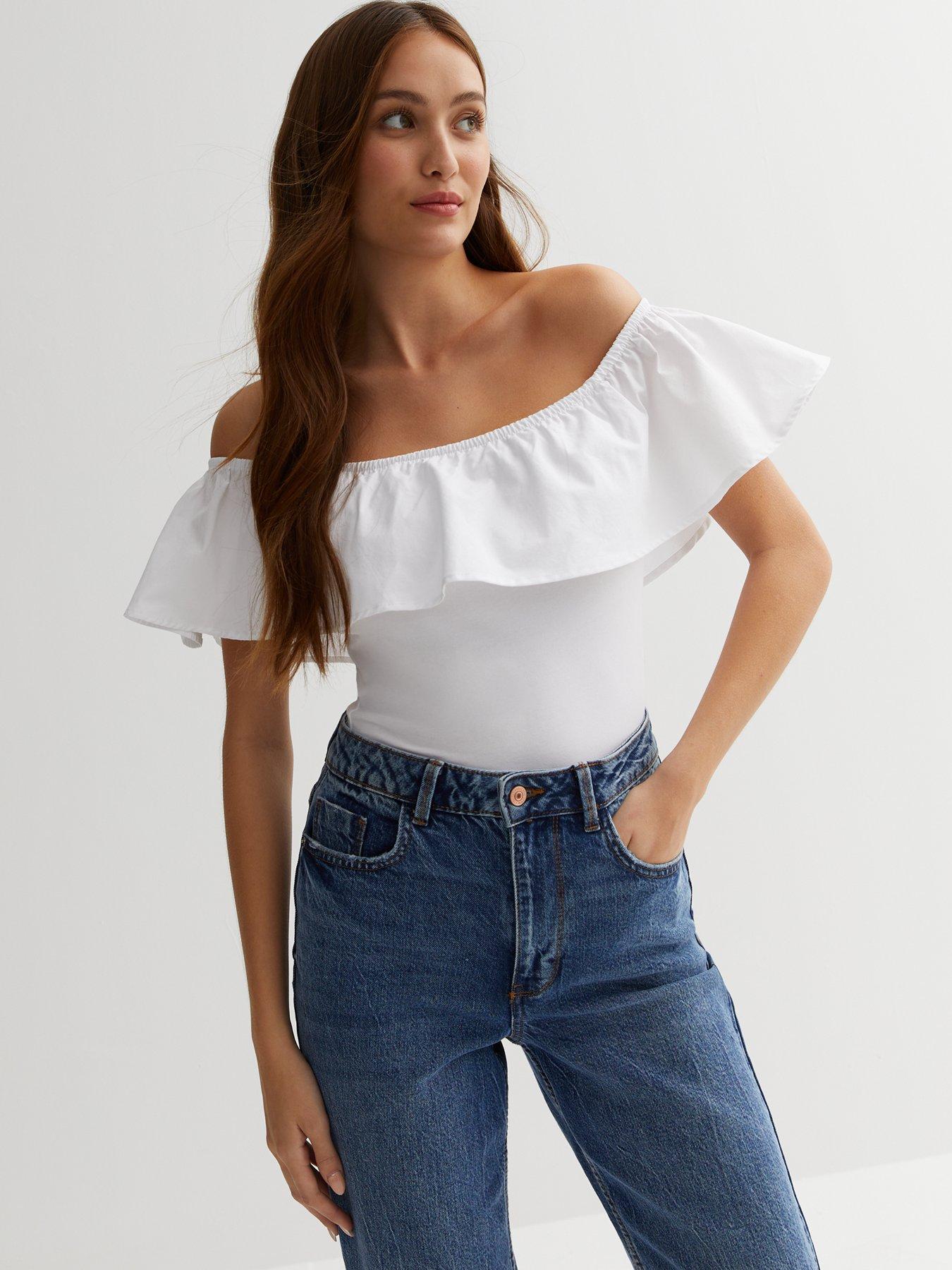 New Look White Poplin Frill Bardot Bodysuit Very Ireland Very well made.