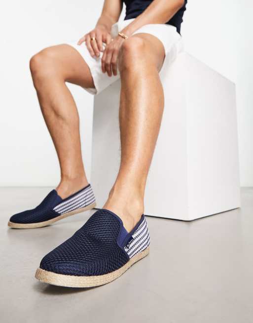 Ben Sherman slip on espadrille in navy contrast stripe Very well made.