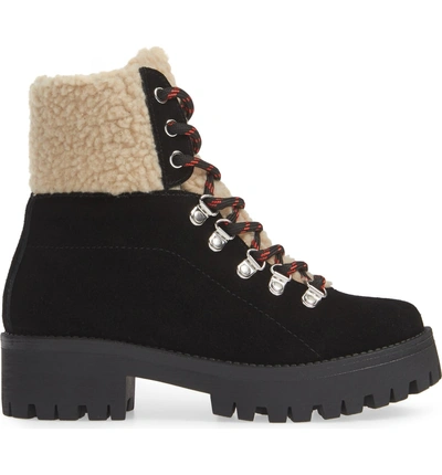 Shop Steve Madden Bitter Faux Shearling Trim Bootie In Black Suede Very well made.