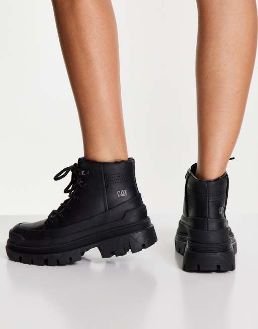 CAT Hardwear chunky sole leather walking boots in black Very well made.