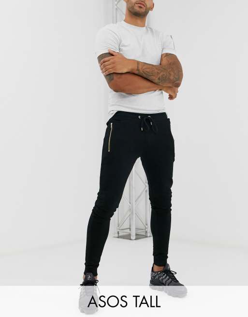 ASOS DESIGN Tall skinny joggers in black with silver zip pockets Very well made.