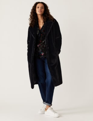 Faux Fur Collared Relaxed Longline Coat Very well made.