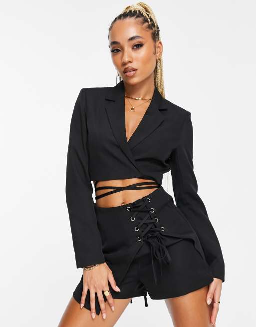 Unique21 high waisted lace up shorts Top co ord in black ASOS Very well made.